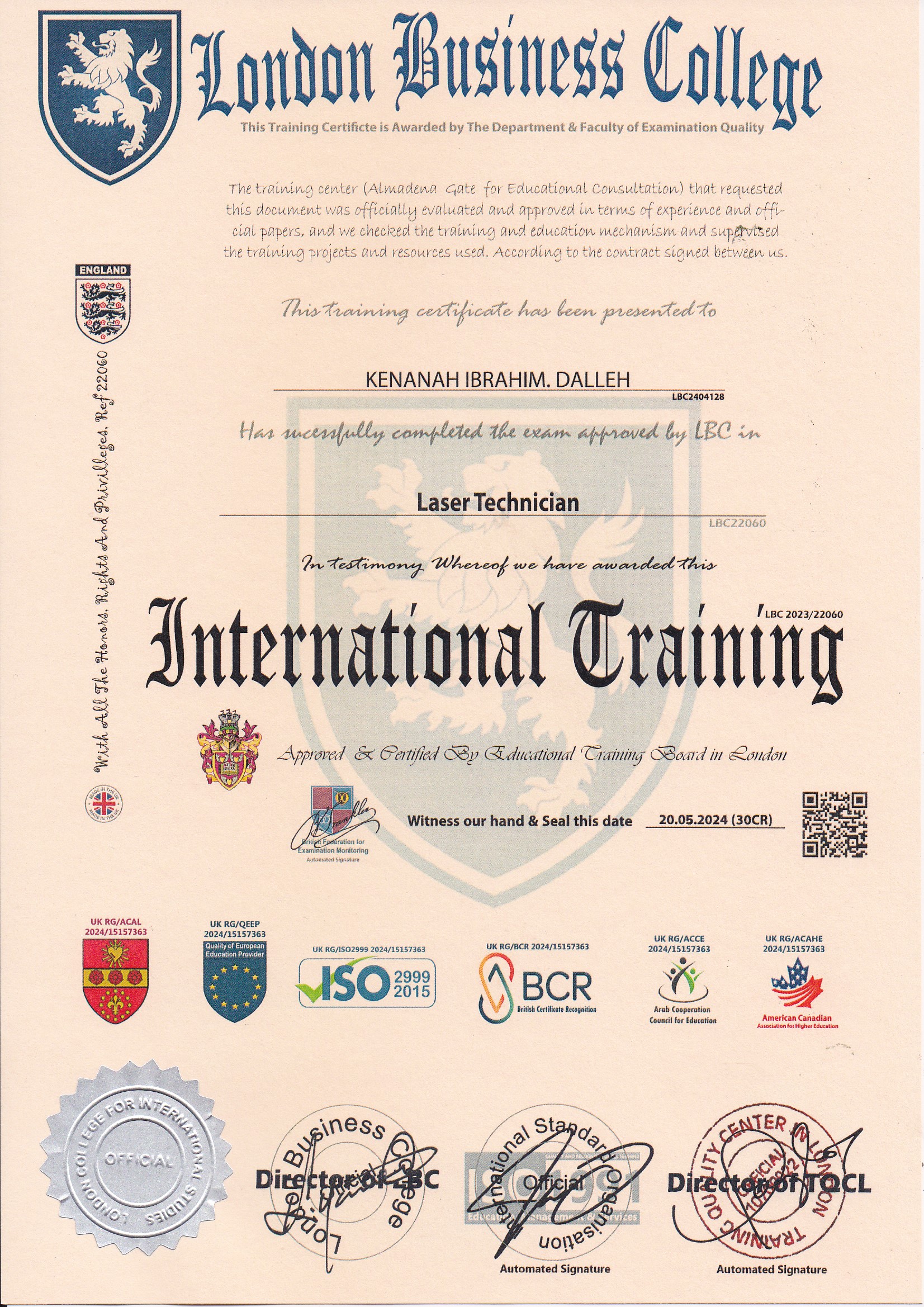 Approved by (Training Quality Center in London)