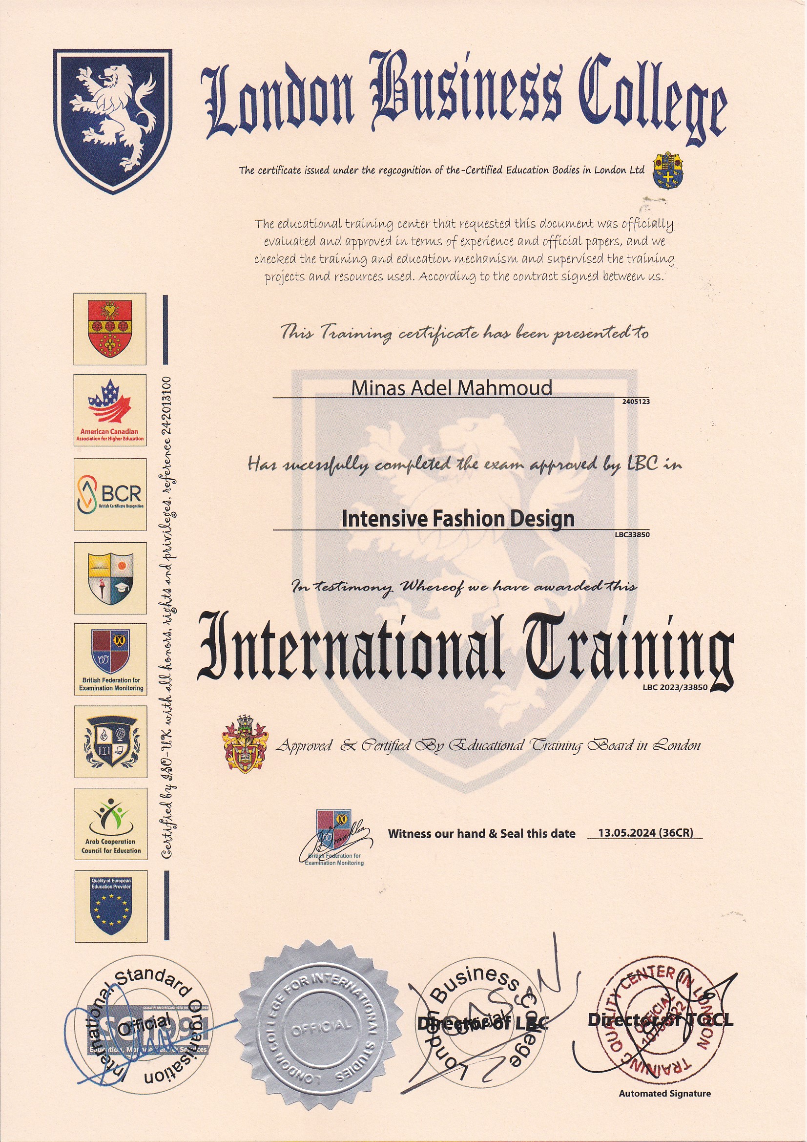 Approved by (Training Quality Center in London)