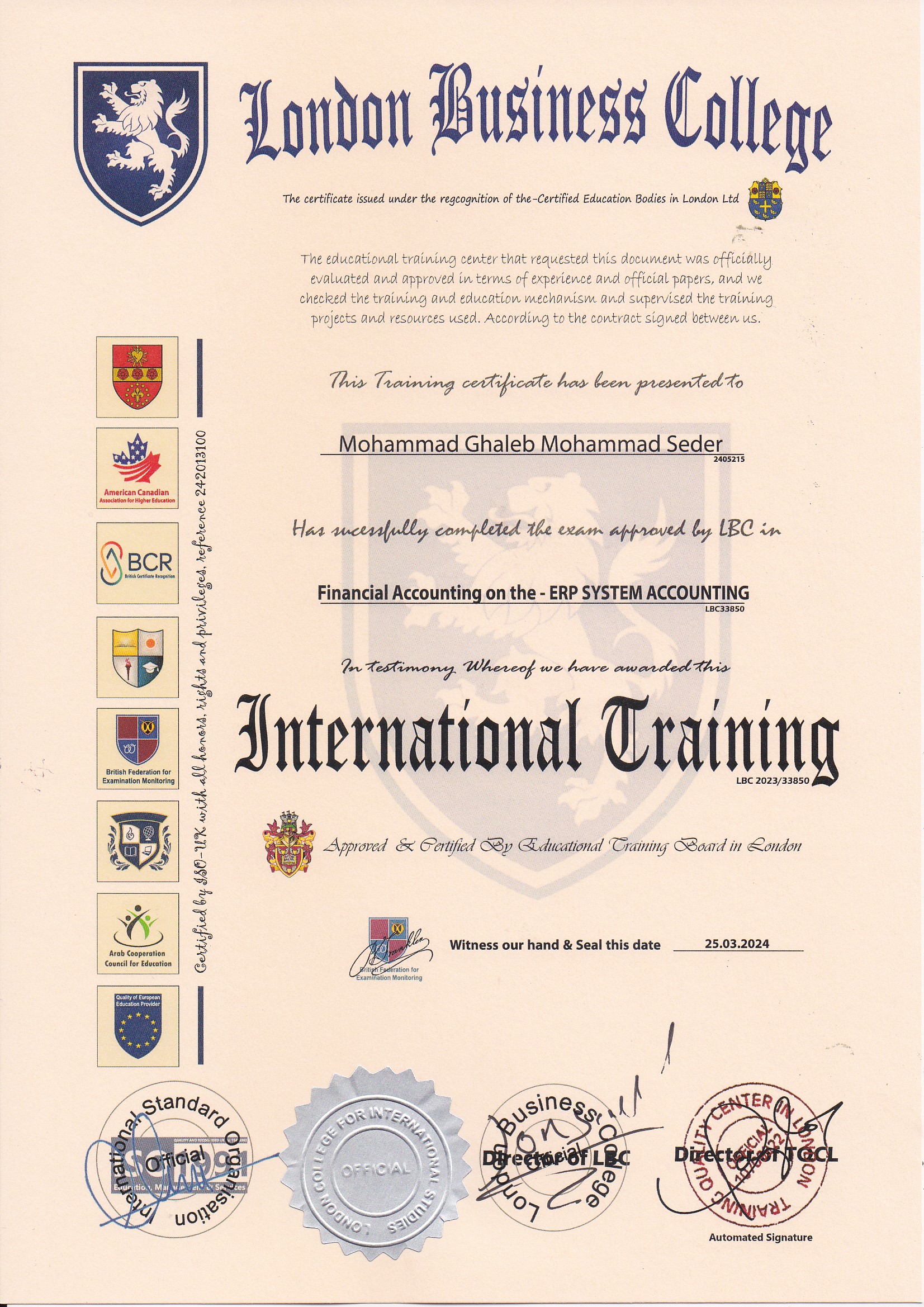 Mohammad Zahran/Financial Accounting on the ( ERP SYSTEM ACCOUNTING )