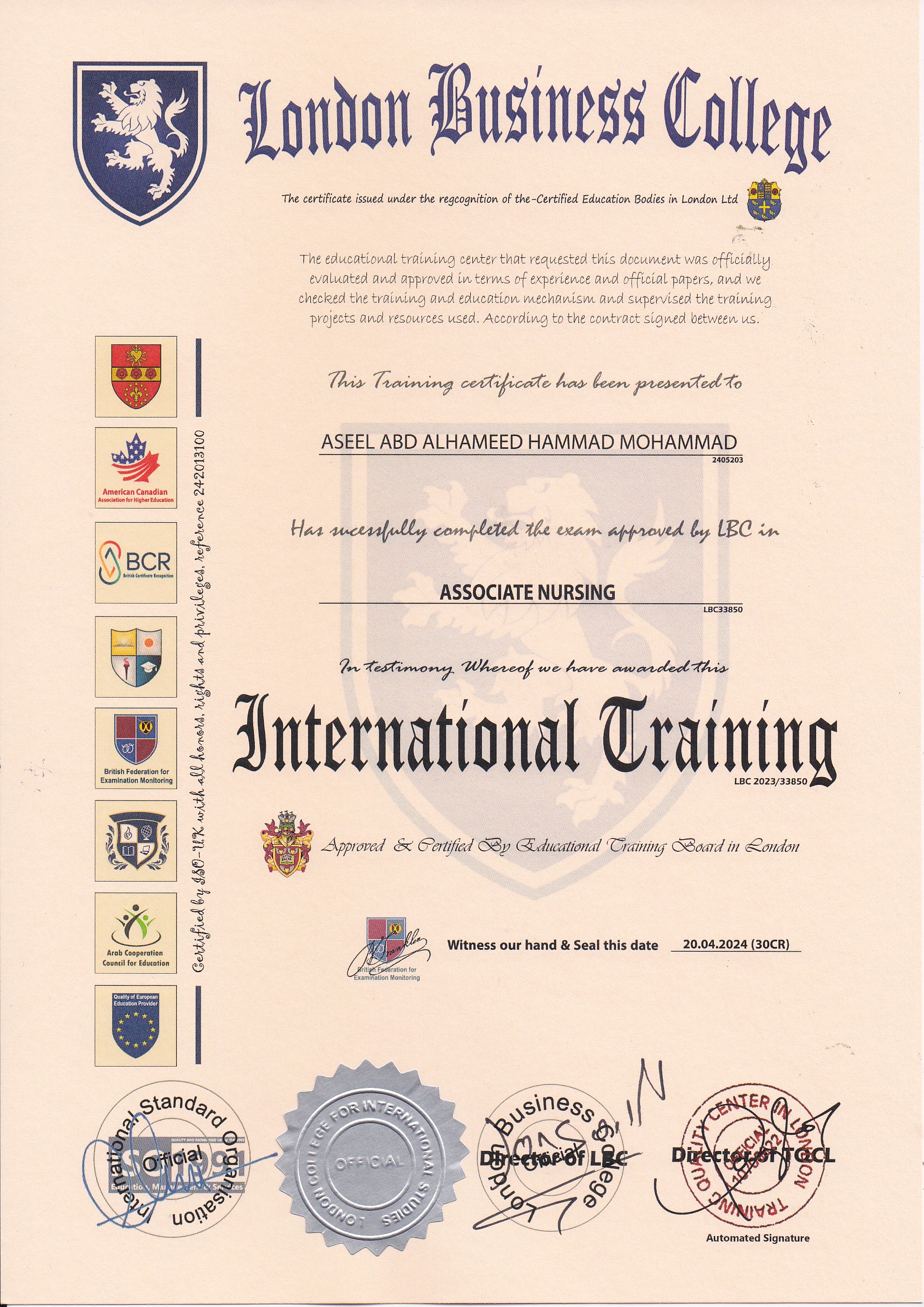 Approved by (Training Quality Center in London)