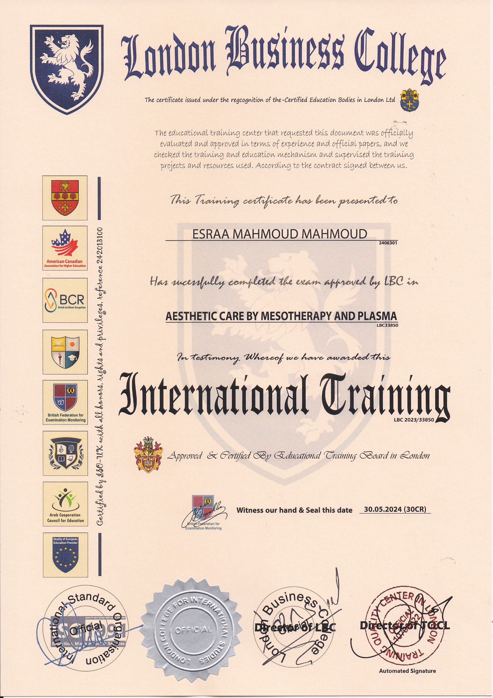 Approved by (Training Quality Center in London)