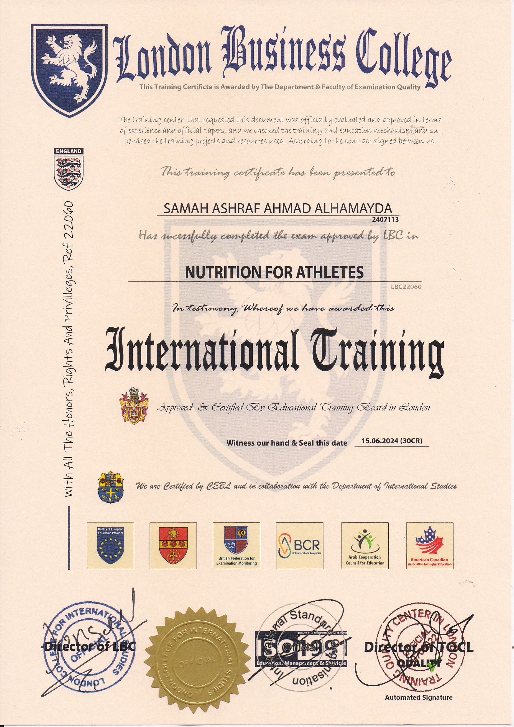 Hadel AL Manaseer Center/NUTRITION FOR ATHLETES