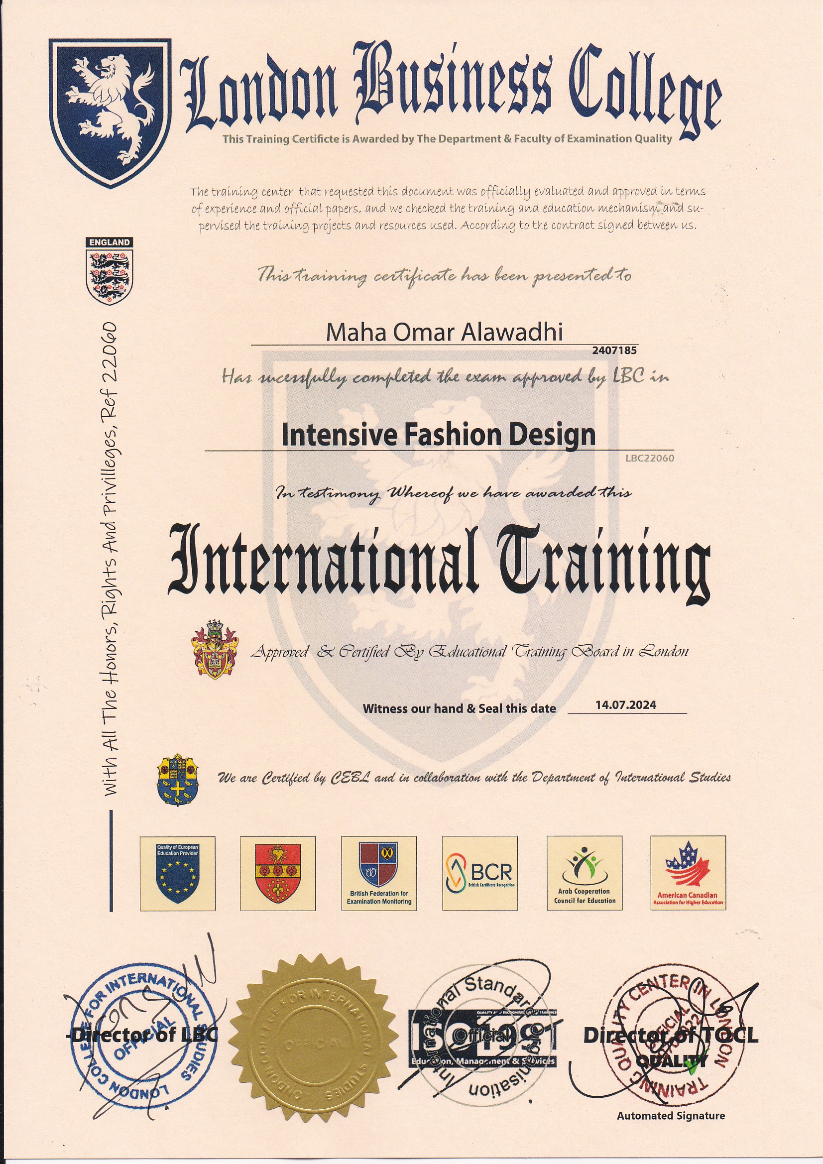 Approved by (Training Quality Center in London)