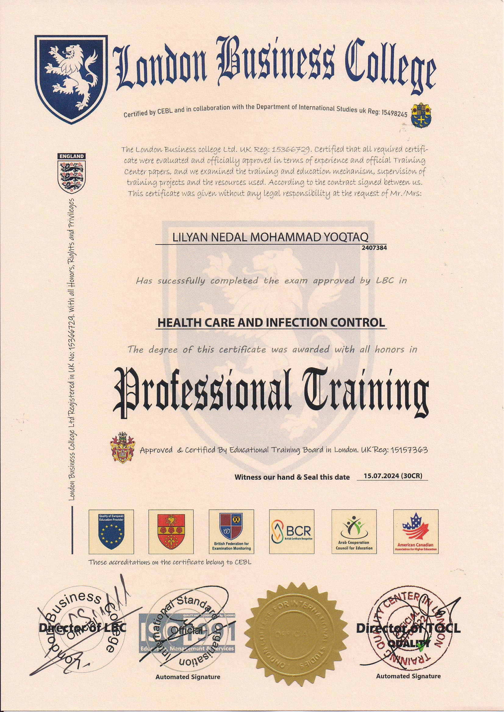 Hadel AL Manaseer Center/HEALTH CARE AND INFECTION CONTROL