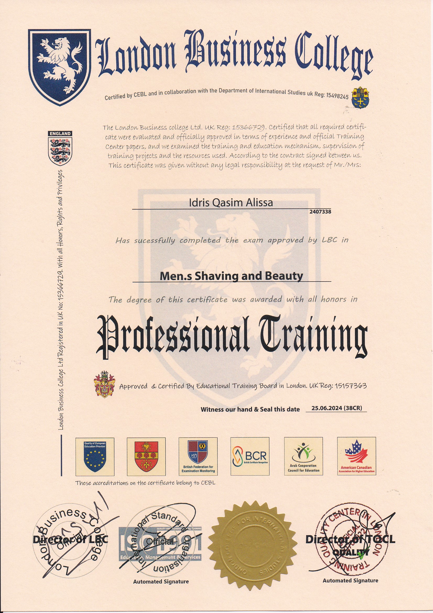Approved by (Training Quality Center in London)