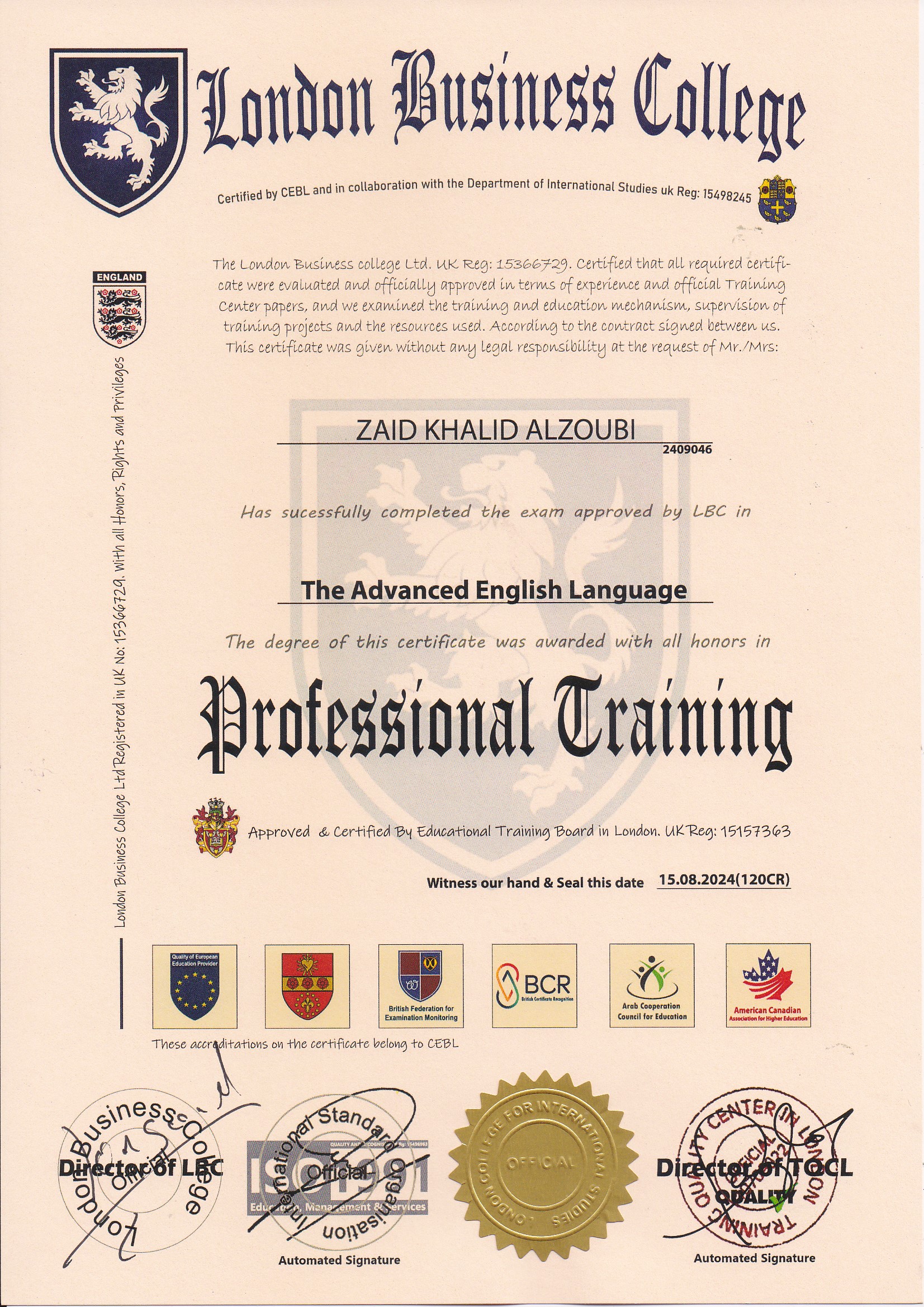 Approved by (Training Quality Center in London)