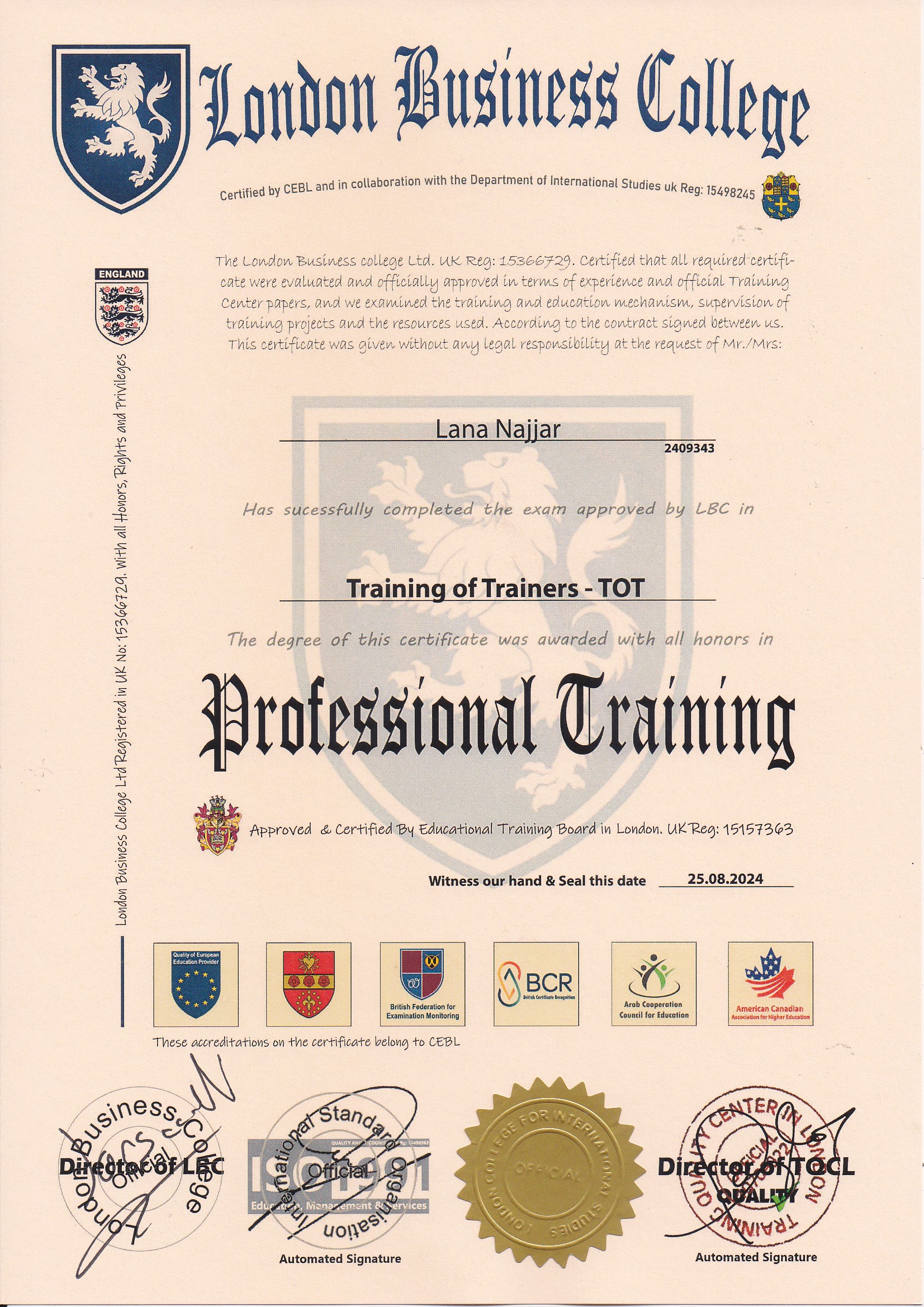 Approved by (Training Quality Center in London)