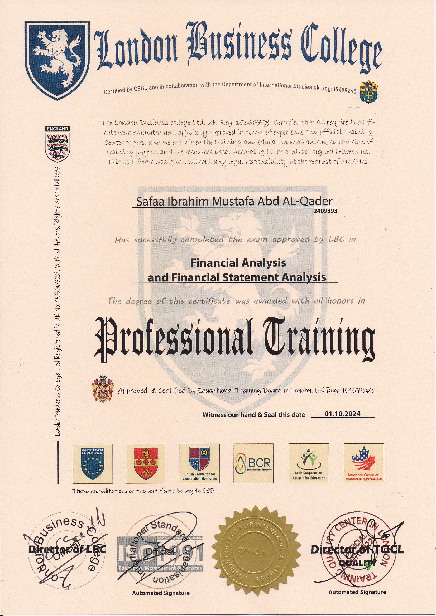 Approved by (Training Quality Center in London)