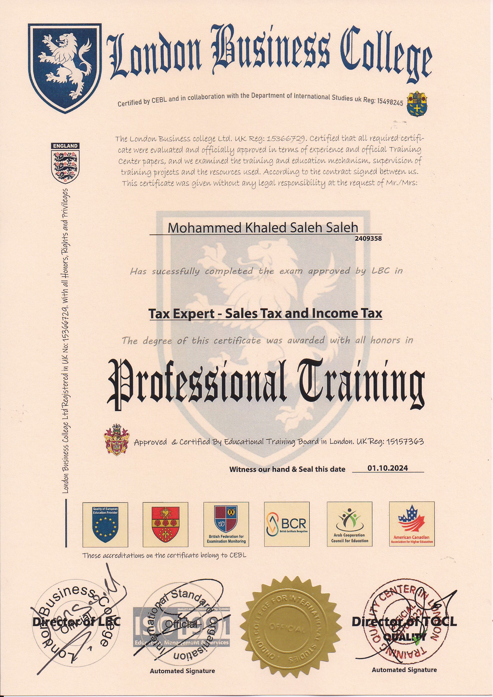 Mohammad Zahran/Tax expert course (sales tax and income tax)