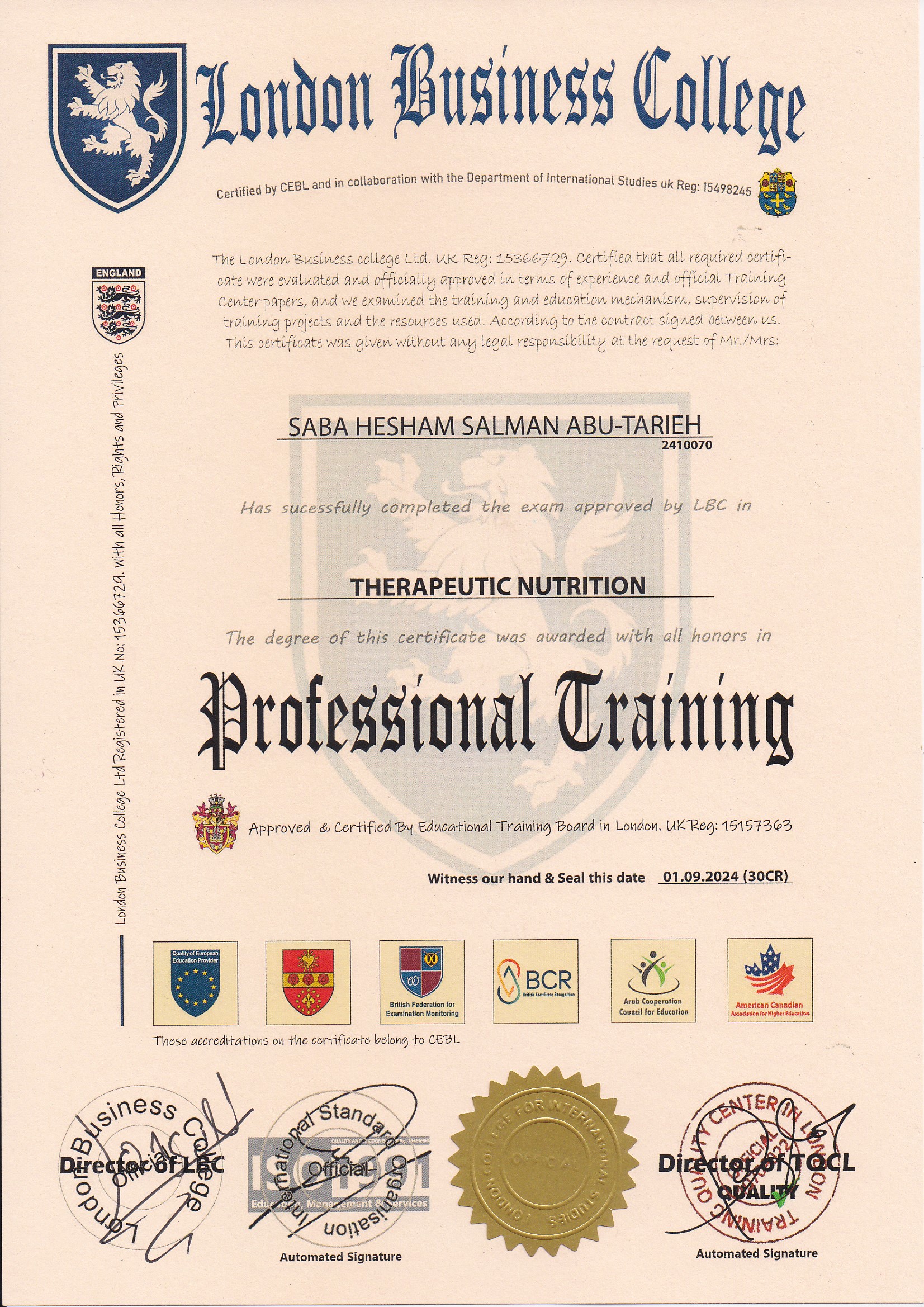 Approved by (Training Quality Center in London)