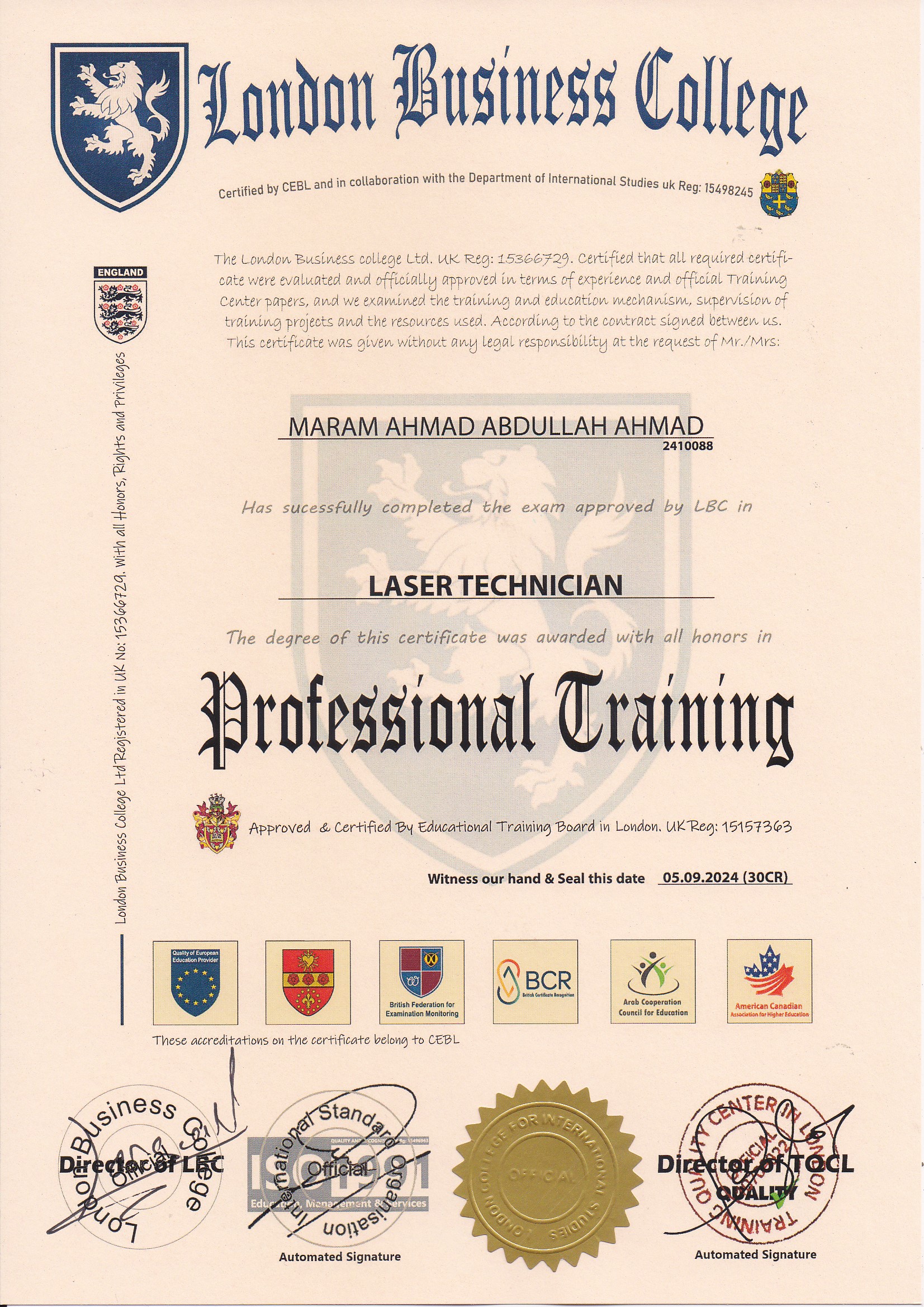Approved by (Training Quality Center in London)