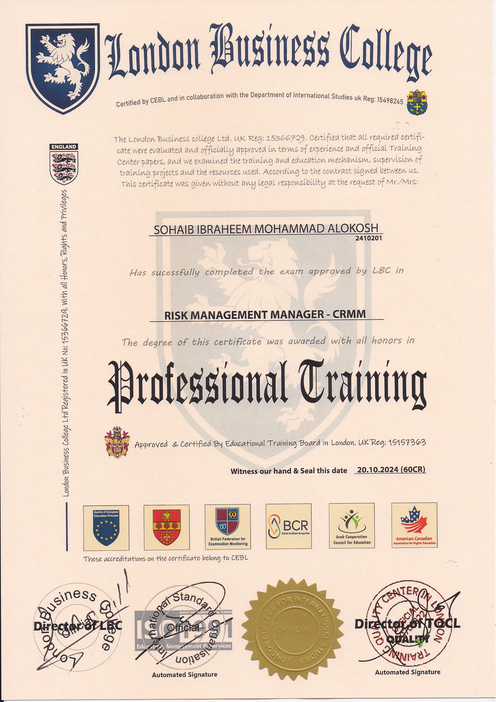 Osama Ayash/CERTIFIED RISK MANAGEMENT MANAGER (CRMM)