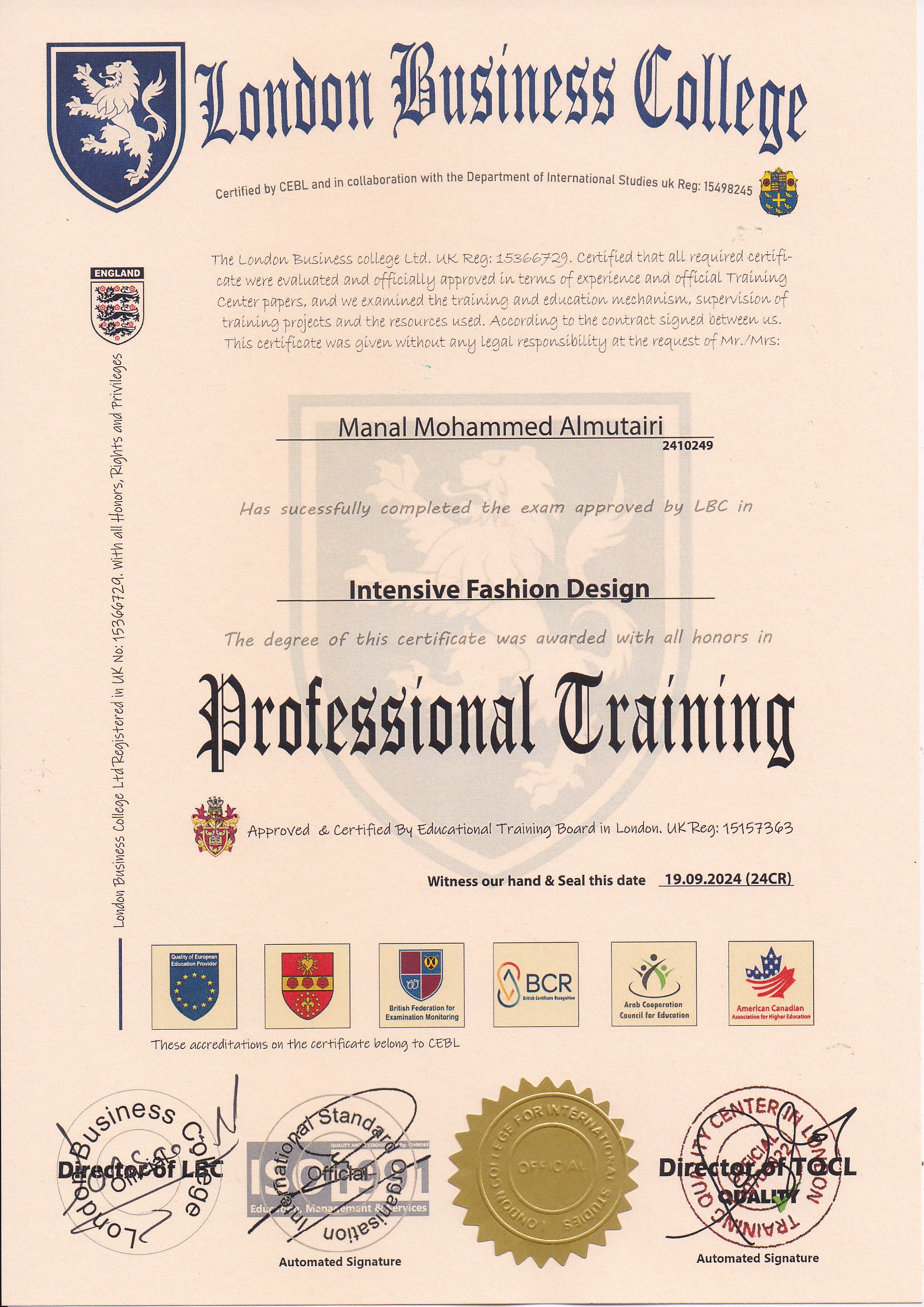 Approved by (Training Quality Center in London)