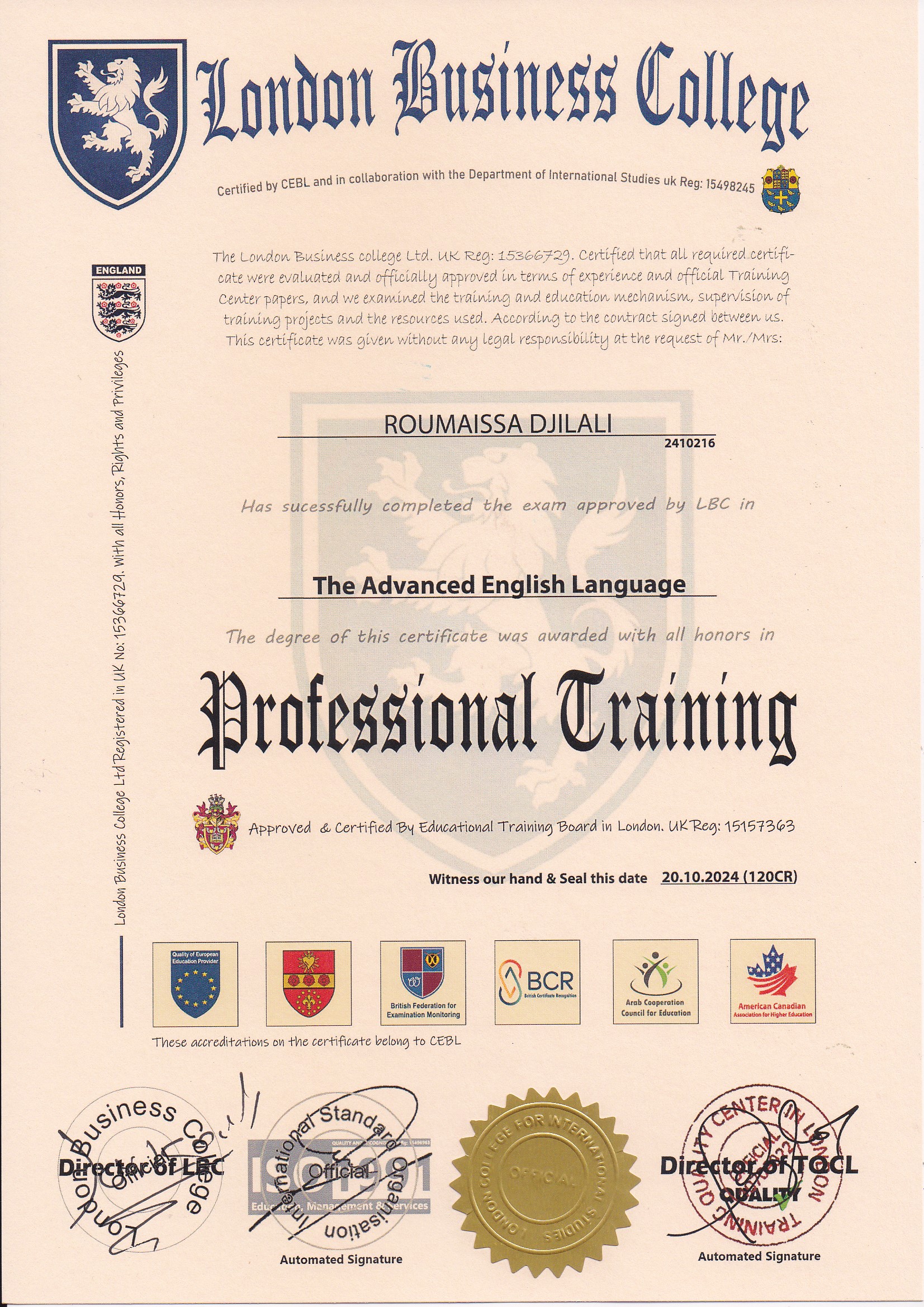 Approved by (Training Quality Center in London)
