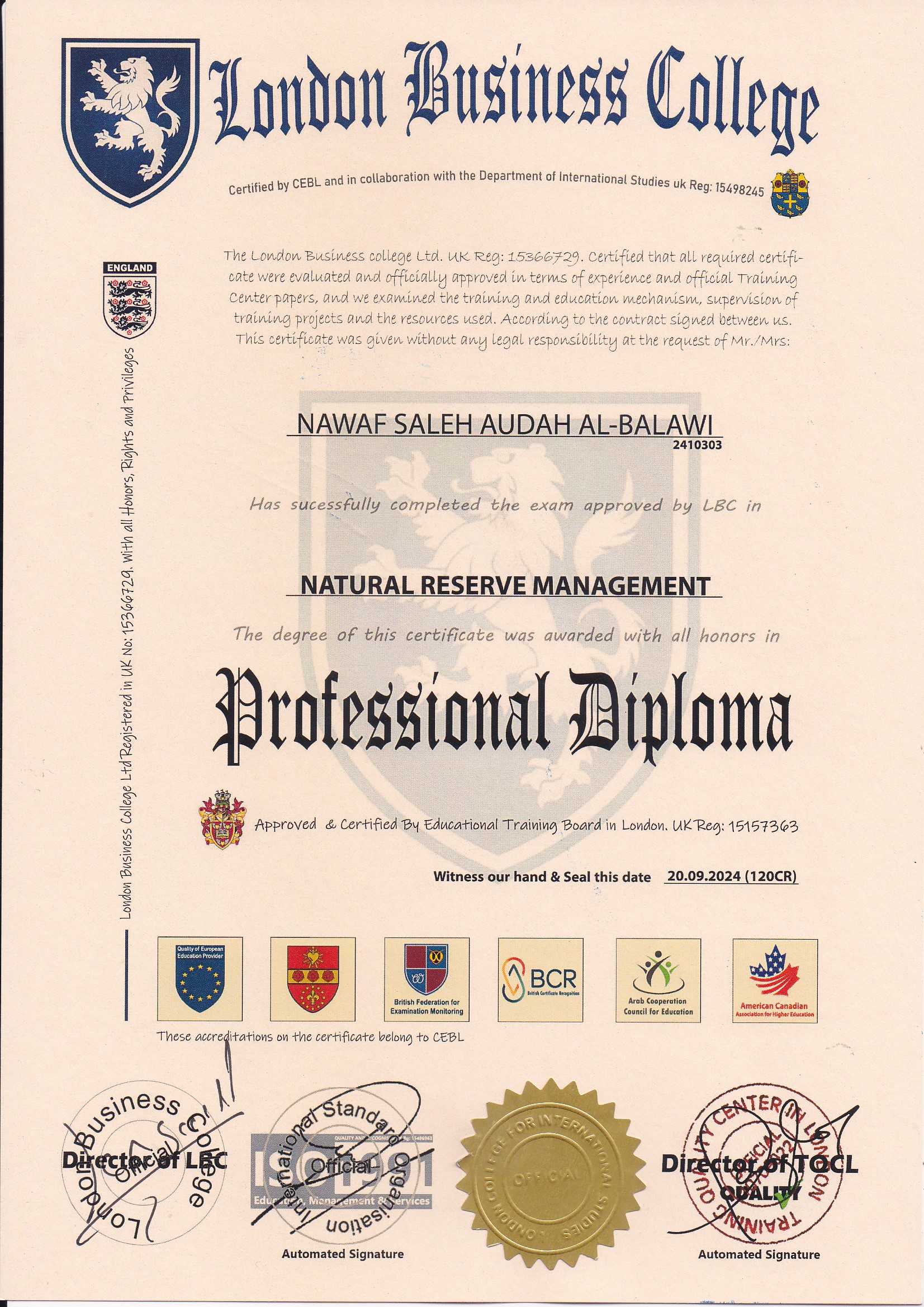 Osama Ayash/DIPLOMA IN NATURAL RESERVE MANAGEMENT
