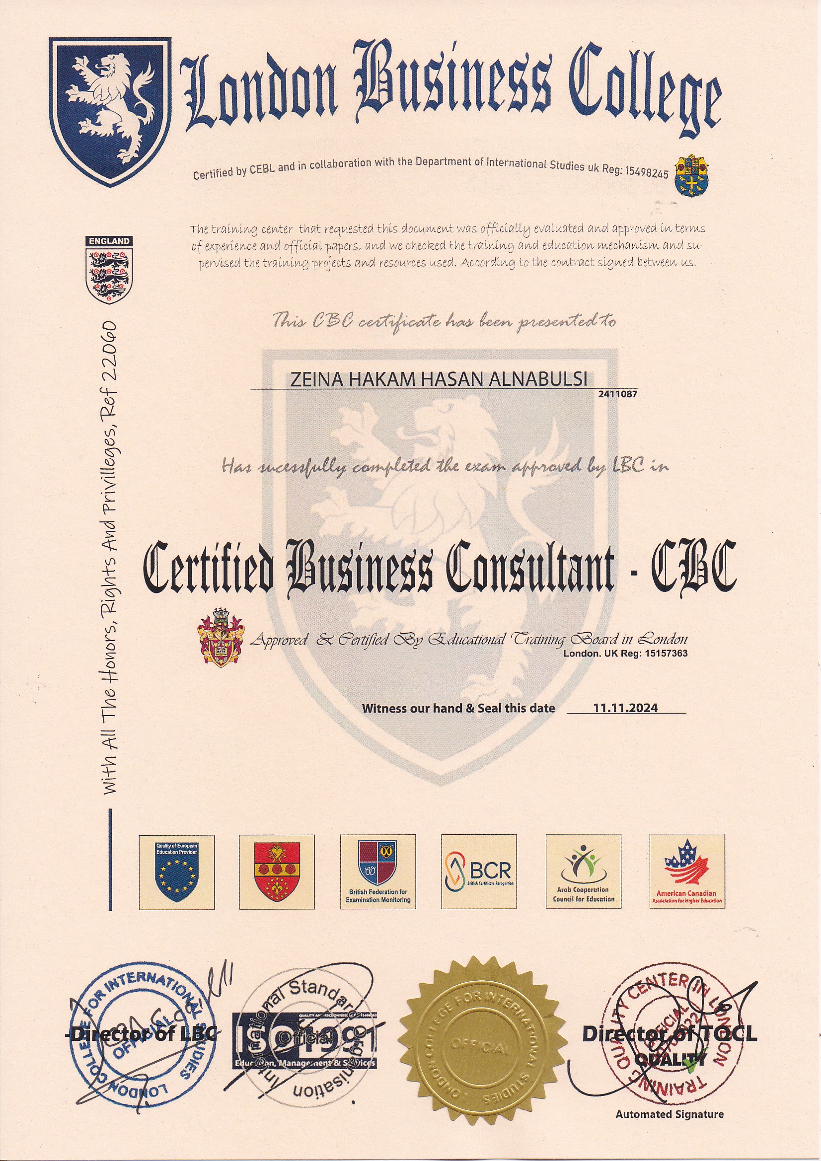 Approved by (Training Quality Center in London)