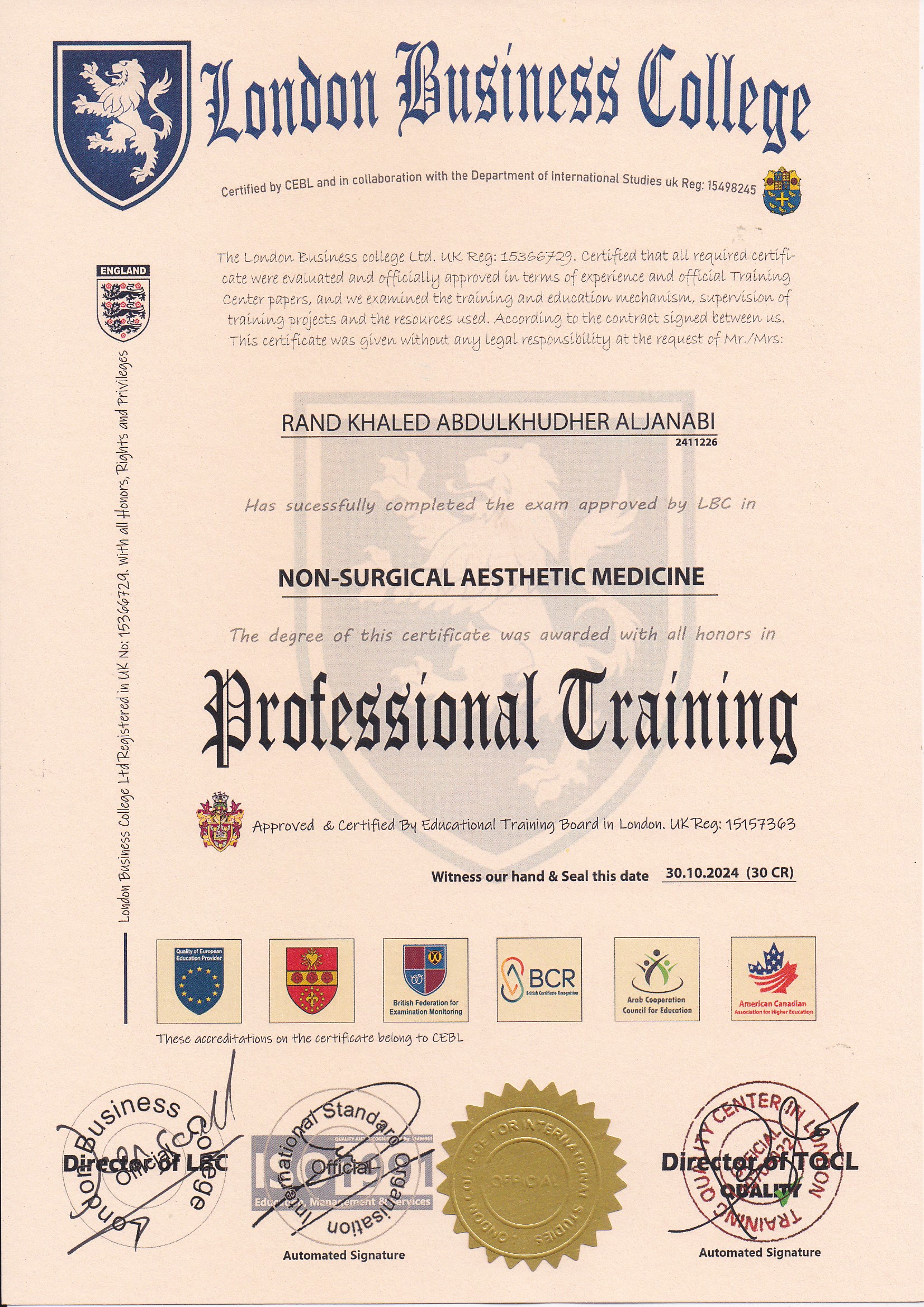 Approved by (Training Quality Center in London)