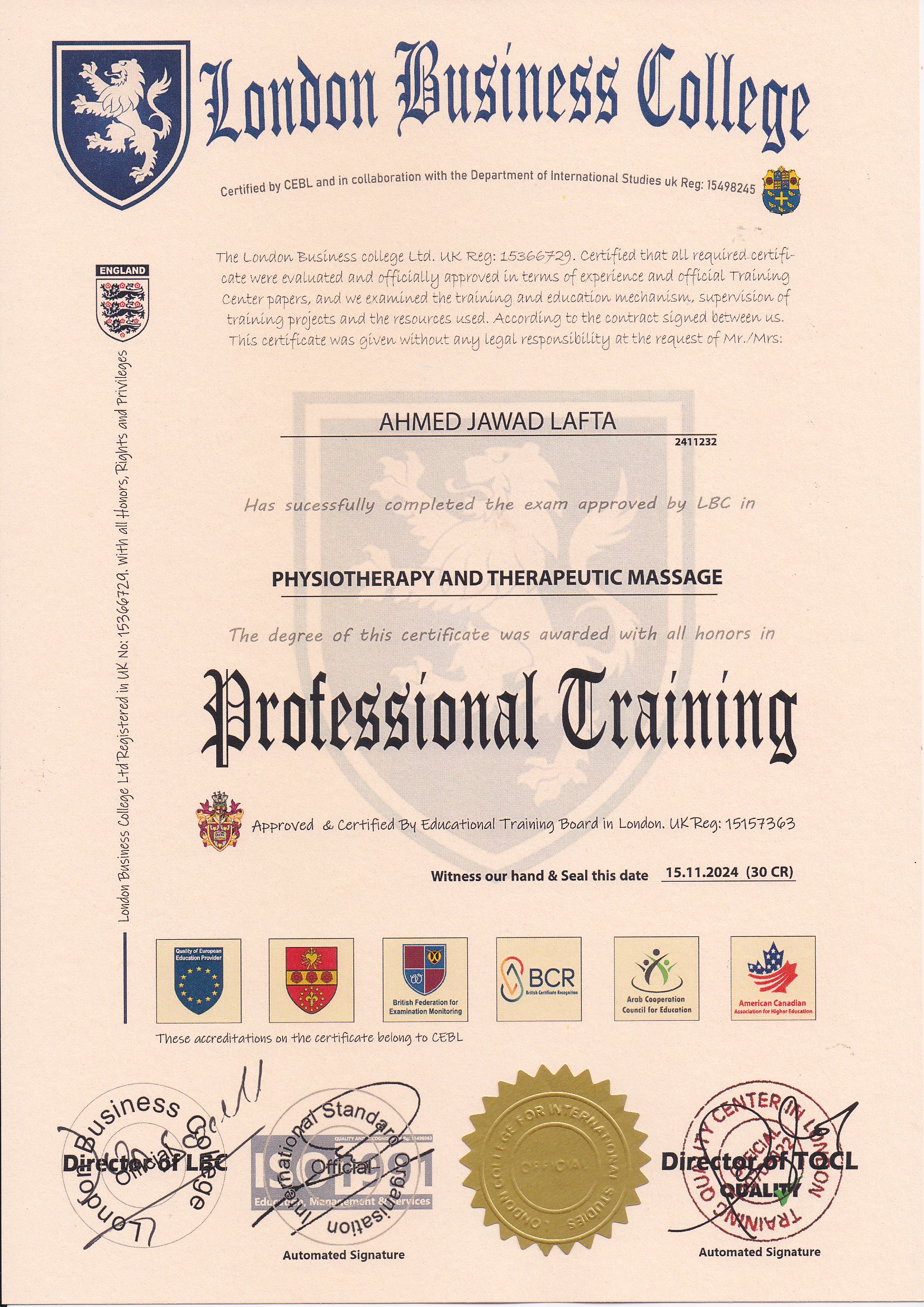 Approved by (Training Quality Center in London)