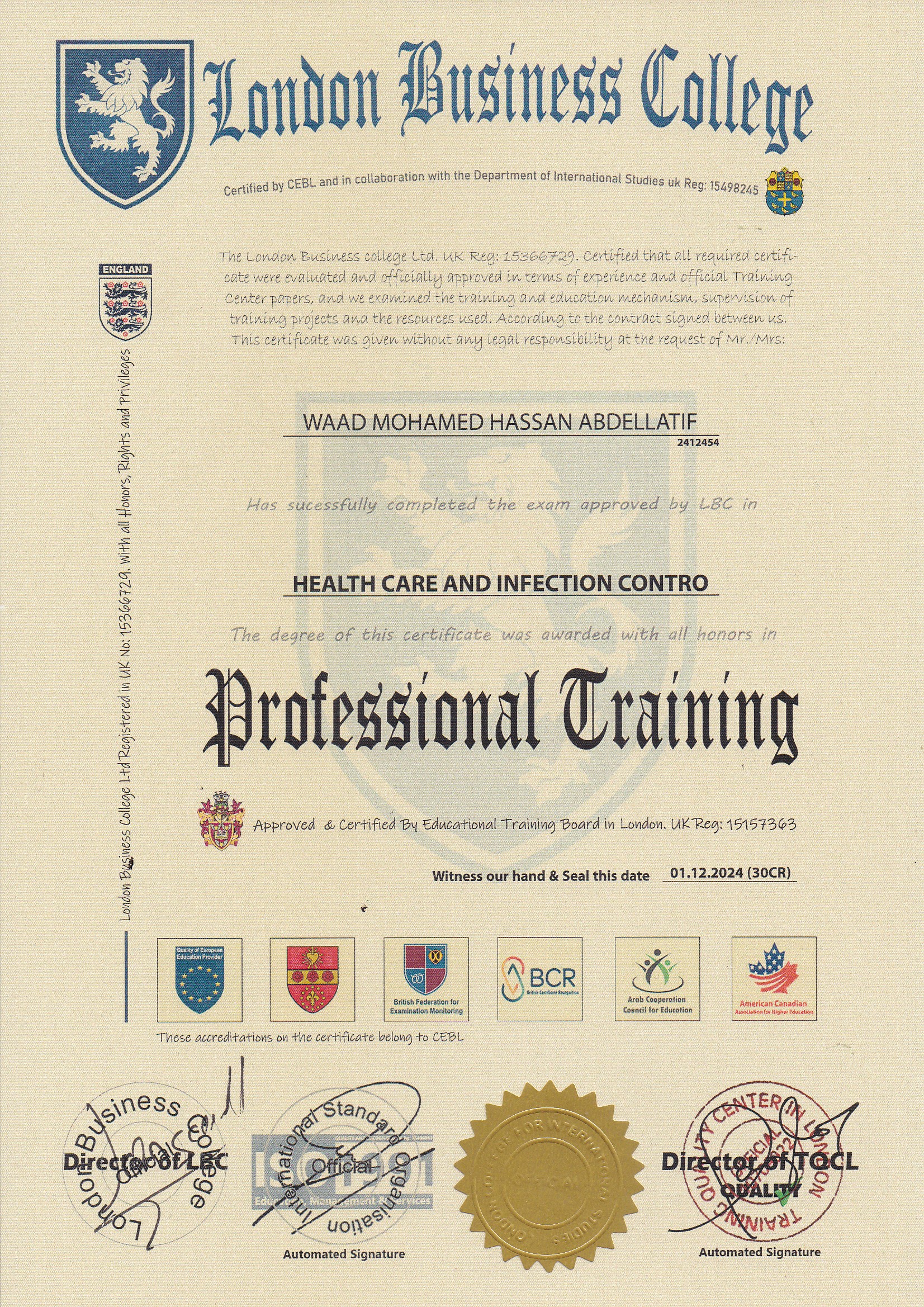 Approved by (Training Quality Center in London)